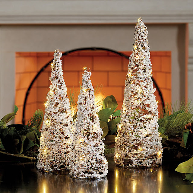 Here are some really pretty cone tree options. Any of these could be placed in/on a blue and white Chinese porcelain cachepot to make them taller and more dramatic -
